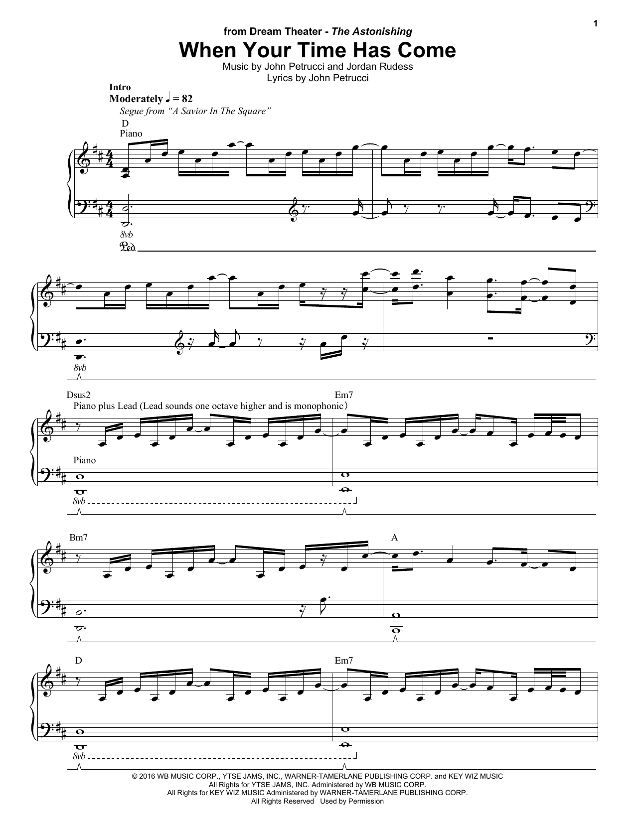 Download or print Dream Theater When Your Time Has Come sheet music, chords and digital score arranged for Keyboard Transcription. This Rock score includes 5 page(s).