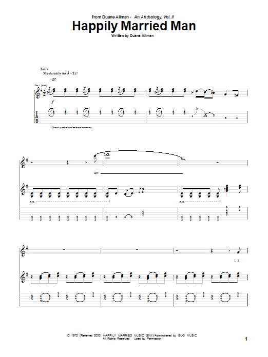 Download or print Duane Allman Happily Married Man sheet music, chords and digital score arranged for Guitar Tab. This Blues score includes 4 page(s).