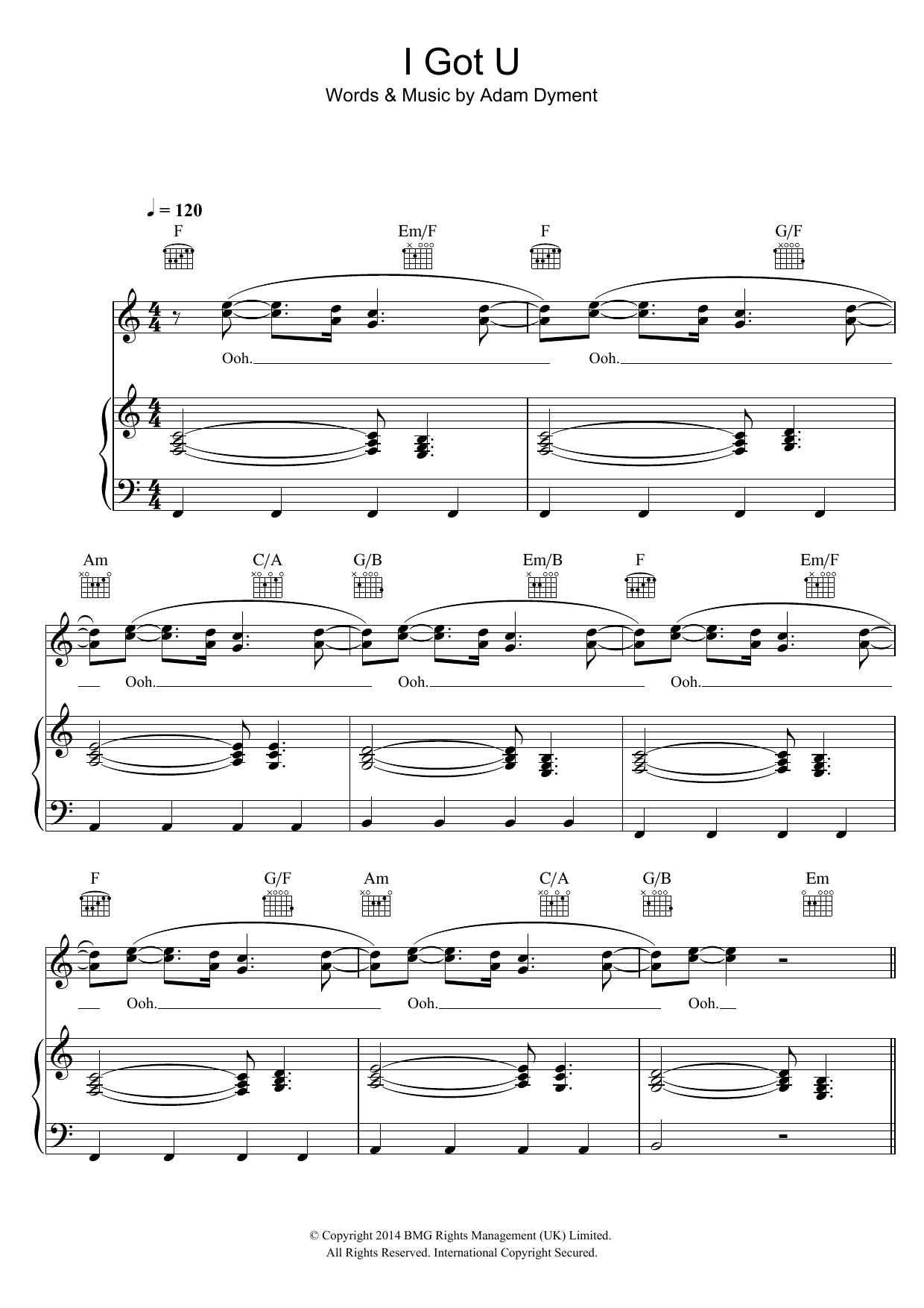 Download or print Duke Dumont I Got U (featuring Jax Jones) sheet music, chords and digital score arranged for Piano, Vocal & Guitar Chords. This Pop score includes 5 page(s).