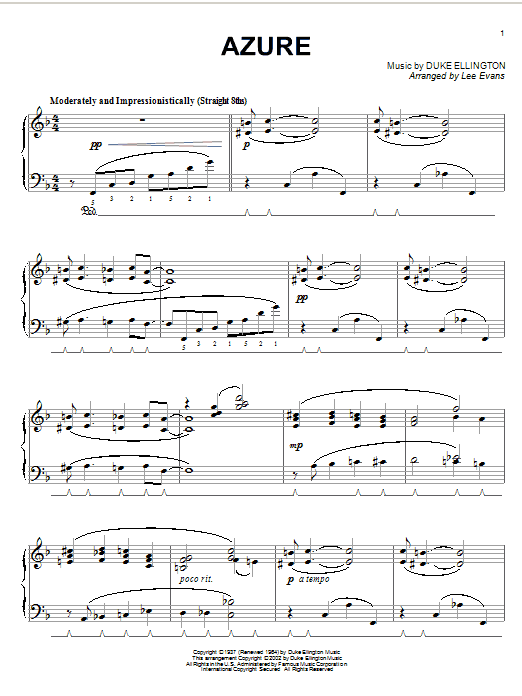 Download or print Duke Ellington Azure sheet music, chords and digital score arranged for Real Book – Melody & Chords – C Instruments. This Jazz score includes 1 page(s).