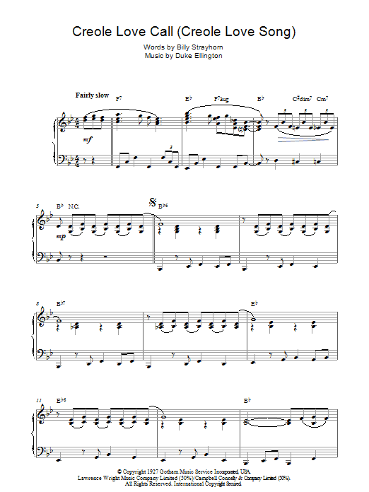 Download or print Duke Ellington Creole Love Call (Creole Love Song) sheet music, chords and digital score arranged for Piano Solo. This Blues score includes 3 page(s).
