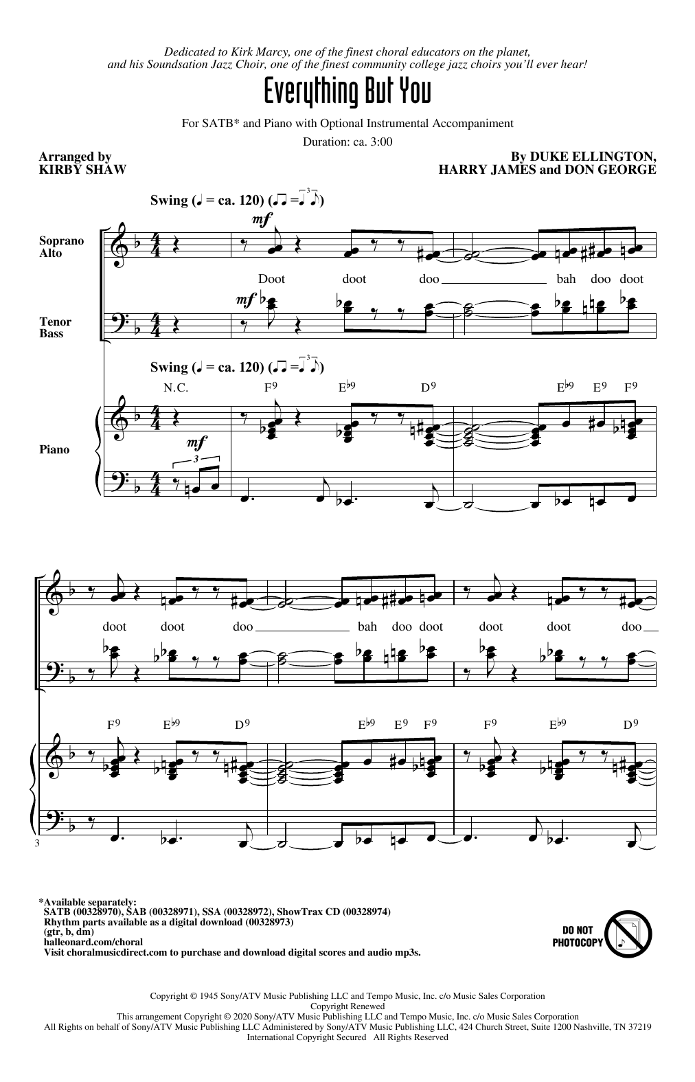 Download or print Duke Ellington Everything But You (arr. Kirby Shaw) sheet music, chords and digital score arranged for SSA Choir. This Jazz score includes 13 page(s).