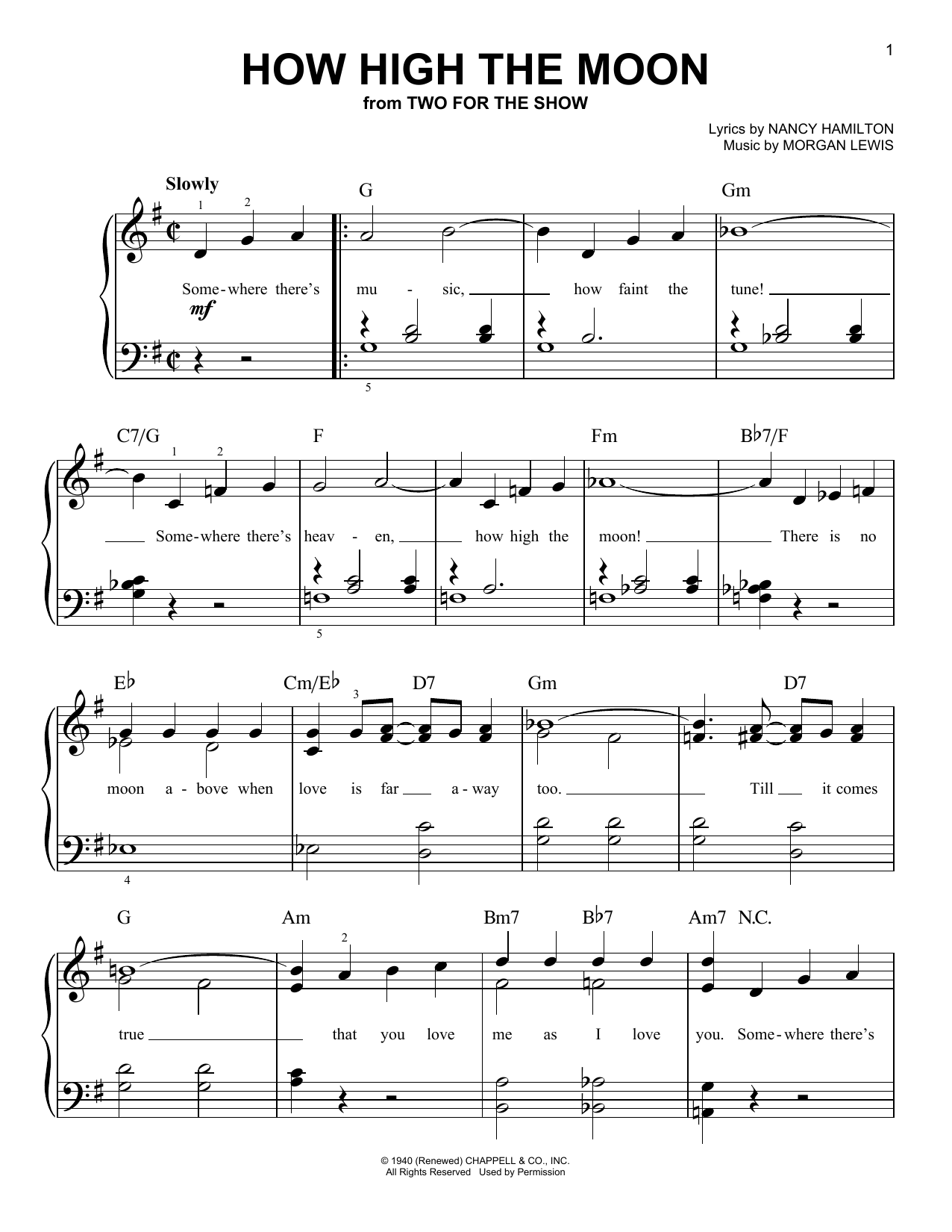 Download or print Duke Ellington How High The Moon sheet music, chords and digital score arranged for Very Easy Piano. This Jazz score includes 2 page(s).