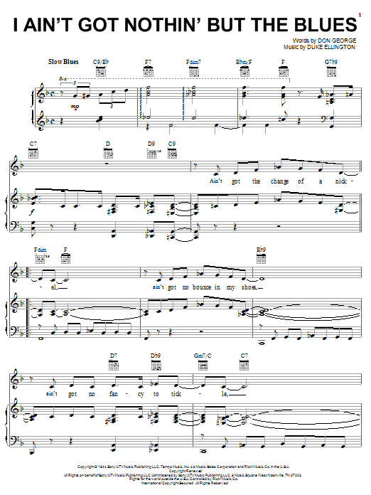 Download or print Duke Ellington I Ain't Got Nothin' But The Blues sheet music, chords and digital score arranged for Real Book – Melody & Chords – C Instruments. This Jazz score includes 1 page(s).