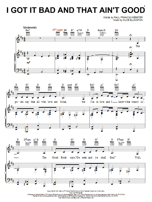 Download or print Duke Ellington I Got It Bad And That Ain't Good sheet music, chords and digital score arranged for Easy Piano. This Jazz score includes 3 page(s).