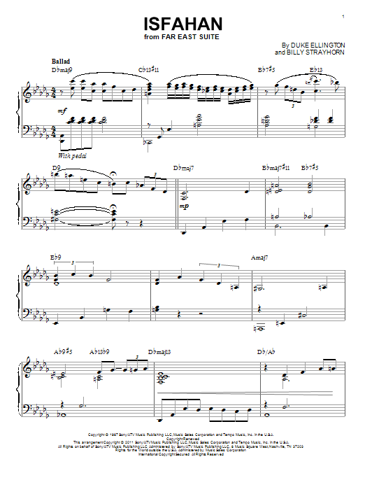 Download or print Duke Ellington Isfahan (arr. Brent Edstrom) sheet music, chords and digital score arranged for Piano Solo. This Jazz score includes 4 page(s).