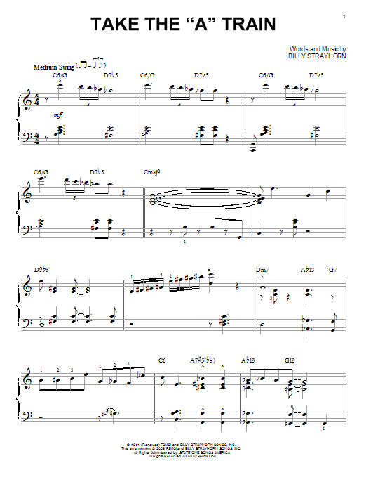 Download or print Duke Ellington Take The "A" Train (arr. Brent Edstrom) sheet music, chords and digital score arranged for Piano Solo. This Jazz score includes 4 page(s).