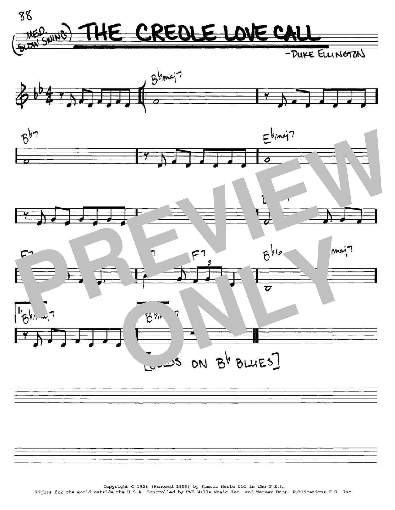 Download or print Duke Ellington The Creole Love Call sheet music, chords and digital score arranged for Real Book – Melody & Chords – C Instruments. This Jazz score includes 1 page(s).