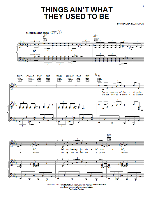 Download or print Duke Ellington Things Ain't What They Used To Be sheet music, chords and digital score arranged for Piano Solo. This Jazz score includes 4 page(s).