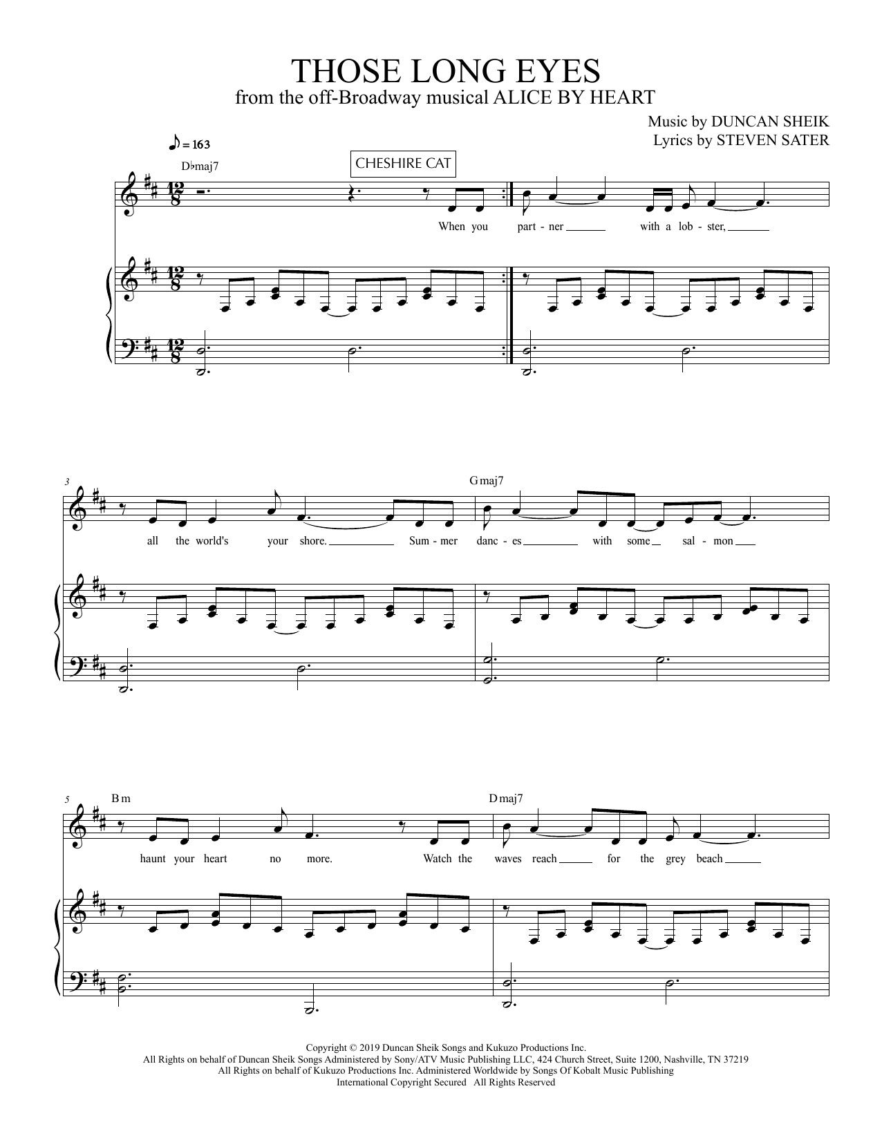 Download or print Duncan Sheik and Steven Sater Those Long Eyes (from Alice By Heart) sheet music, chords and digital score arranged for Piano & Vocal. This Musical/Show score includes 4 page(s).