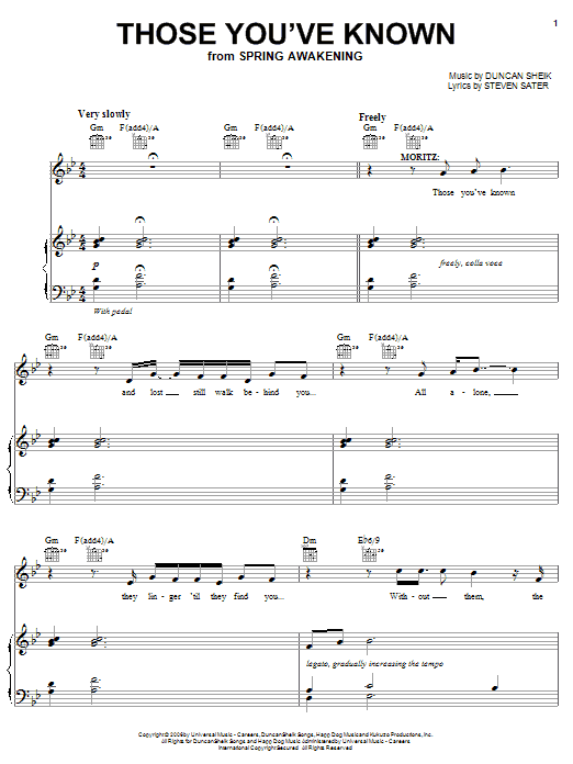 Download or print Duncan Sheik Those You've Known sheet music, chords and digital score arranged for Piano & Vocal. This Broadway score includes 9 page(s).