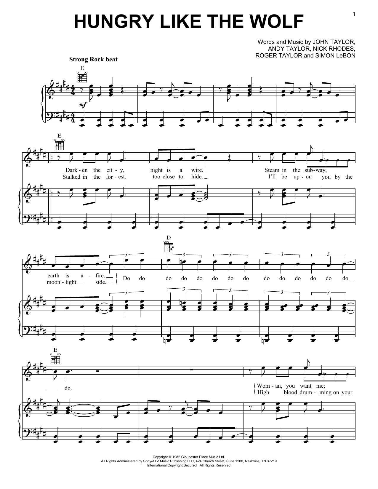 Download or print Duran Duran Hungry Like The Wolf sheet music, chords and digital score arranged for Easy Bass Tab. This Pop score includes 5 page(s).