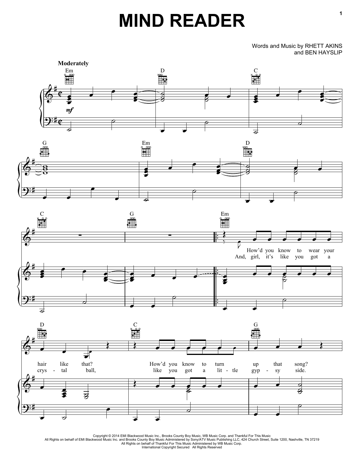 Download or print Dustin Lynch Mind Reader sheet music, chords and digital score arranged for Piano, Vocal & Guitar Chords (Right-Hand Melody). This Country score includes 7 page(s).