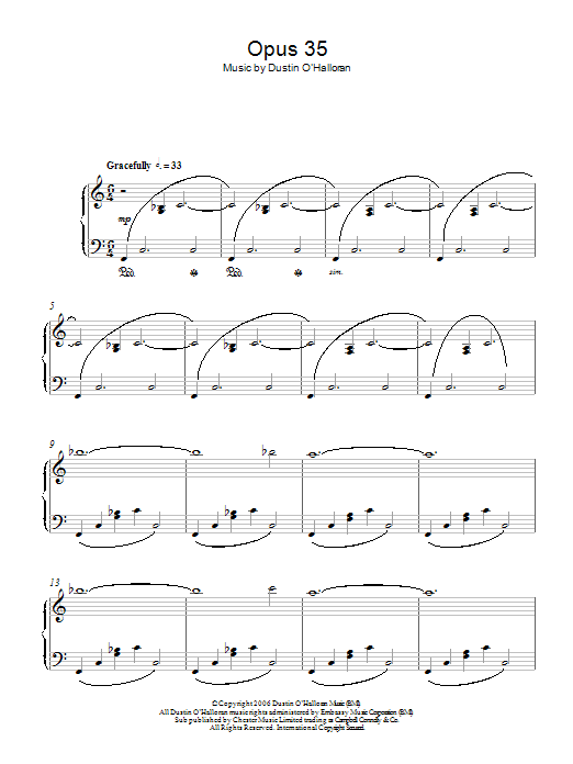 Download or print Dustin O'Halloran Opus 35 sheet music, chords and digital score arranged for Piano Solo. This Classical score includes 4 page(s).