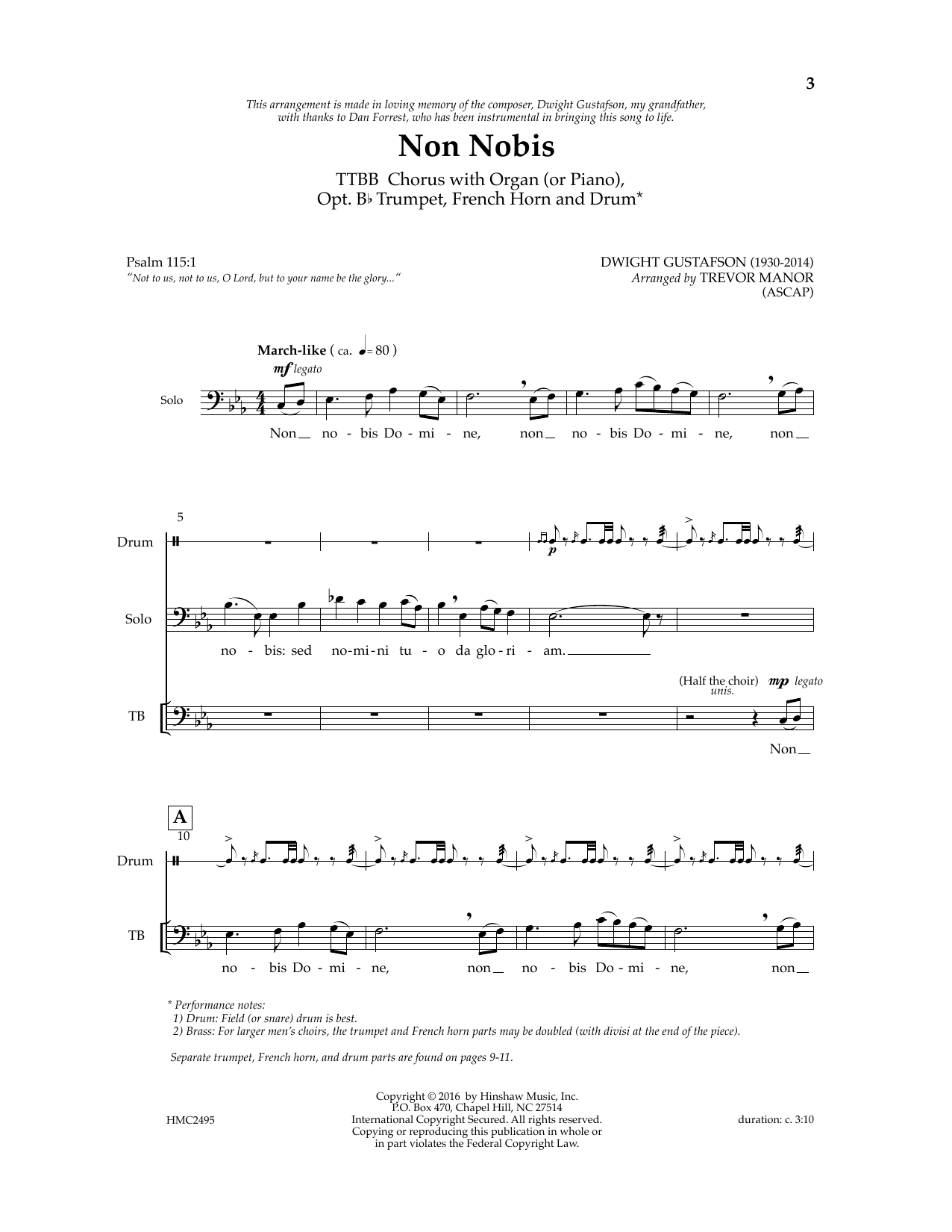 Download or print Dwight Gustafson Non Nobis (arr. Trevor Manor) sheet music, chords and digital score arranged for TTBB Choir. This Concert score includes 10 page(s).