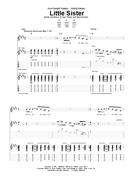 Download or print Dwight Yoakam Little Sister sheet music, chords and digital score arranged for Guitar Tab. This Pop score includes 11 page(s).
