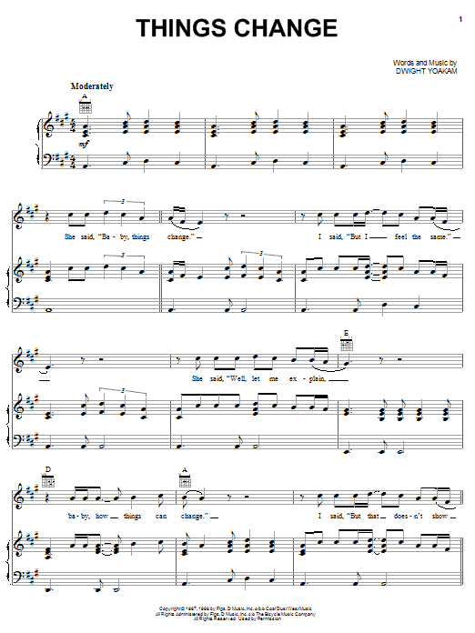 Download or print Dwight Yoakam Things Change sheet music, chords and digital score arranged for Guitar Tab. This Country score includes 10 page(s).