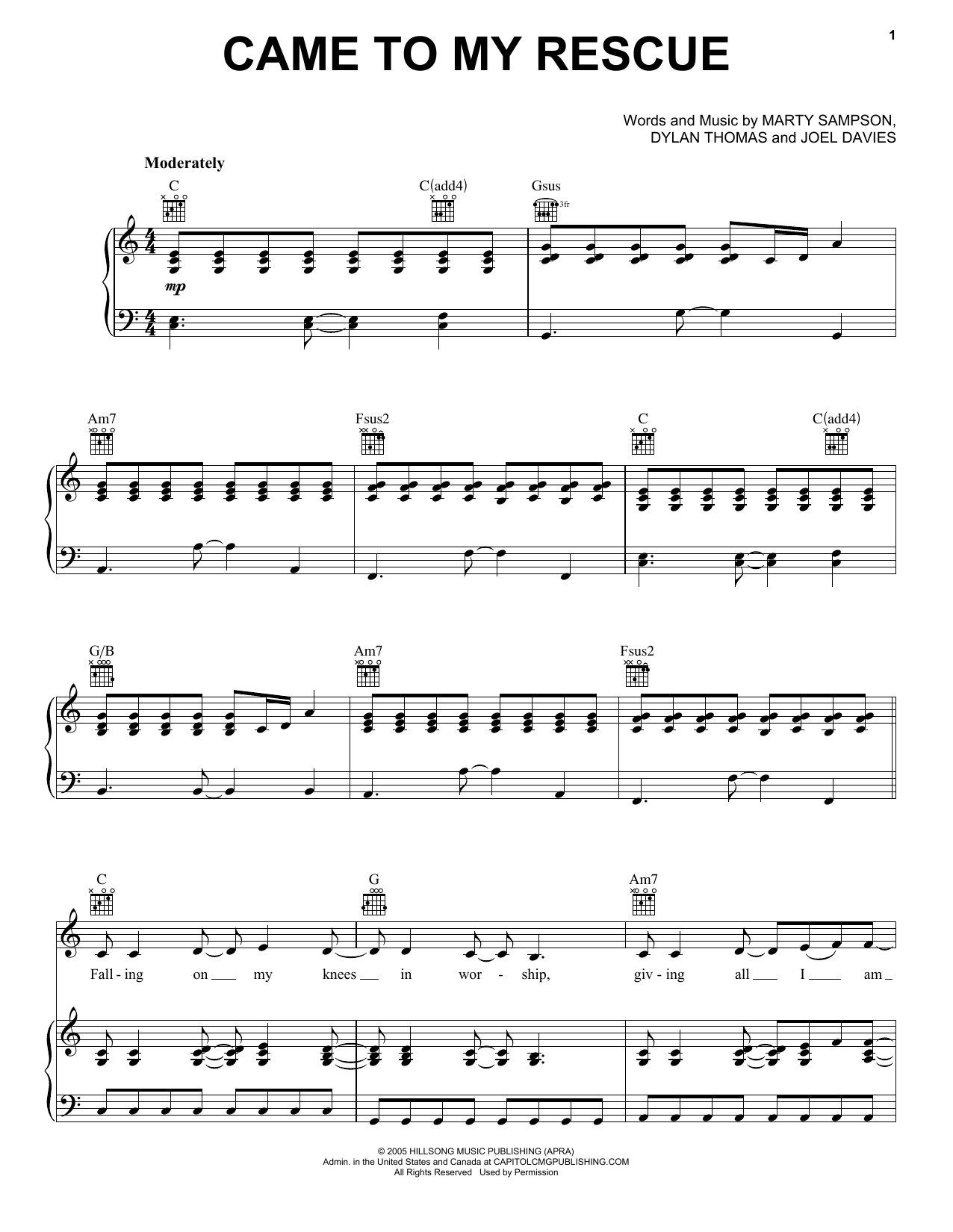 Download or print Hillsong United Came To My Rescue sheet music, chords and digital score arranged for Easy Piano. This Christian score includes 6 page(s).