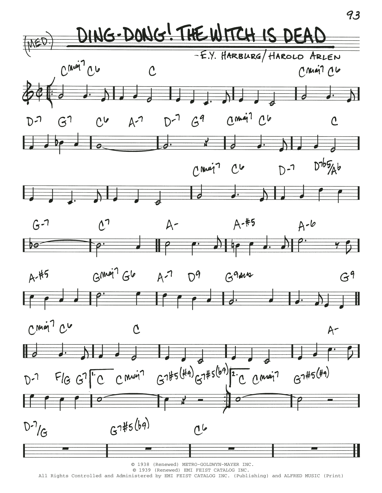 Download or print E.Y. "Yip" Harburg and Harold Arlen Ding-Dong! The Witch Is Dead sheet music, chords and digital score arranged for Real Book – Melody & Chords. This Children score includes 1 page(s).