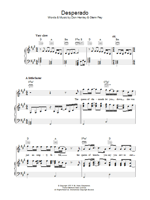 Download or print Eagles Desperado (Part II) sheet music, chords and digital score arranged for Piano, Vocal & Guitar Chords. This Pop score includes 4 page(s).