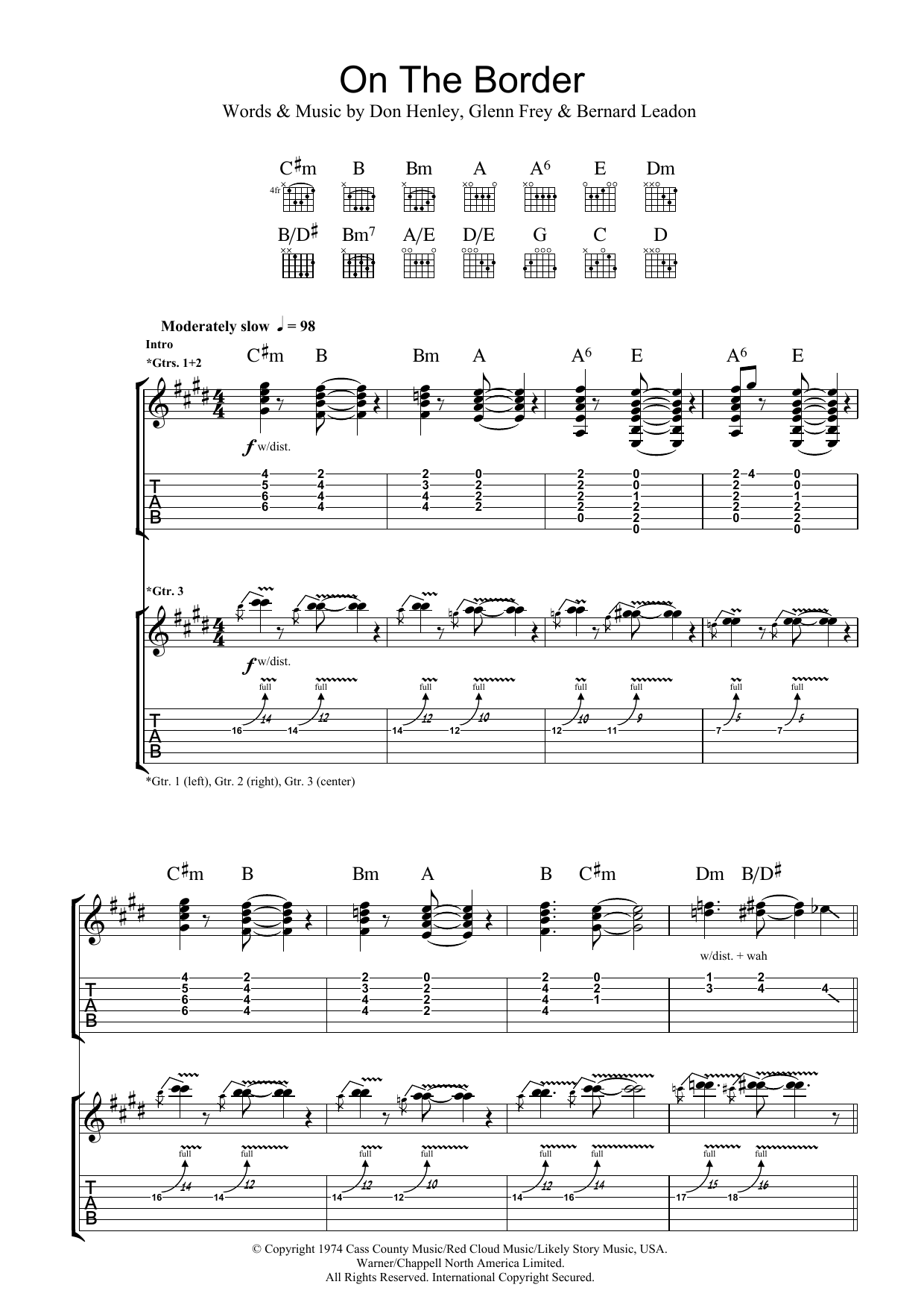 Download or print Eagles On The Border sheet music, chords and digital score arranged for Guitar Tab. This Rock score includes 15 page(s).