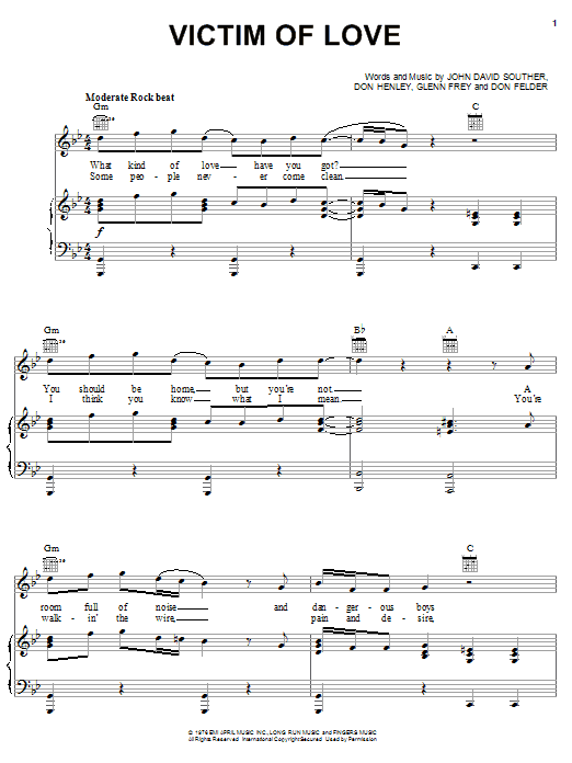Download or print Eagles Victim Of Love sheet music, chords and digital score arranged for Guitar Tab. This Pop score includes 14 page(s).