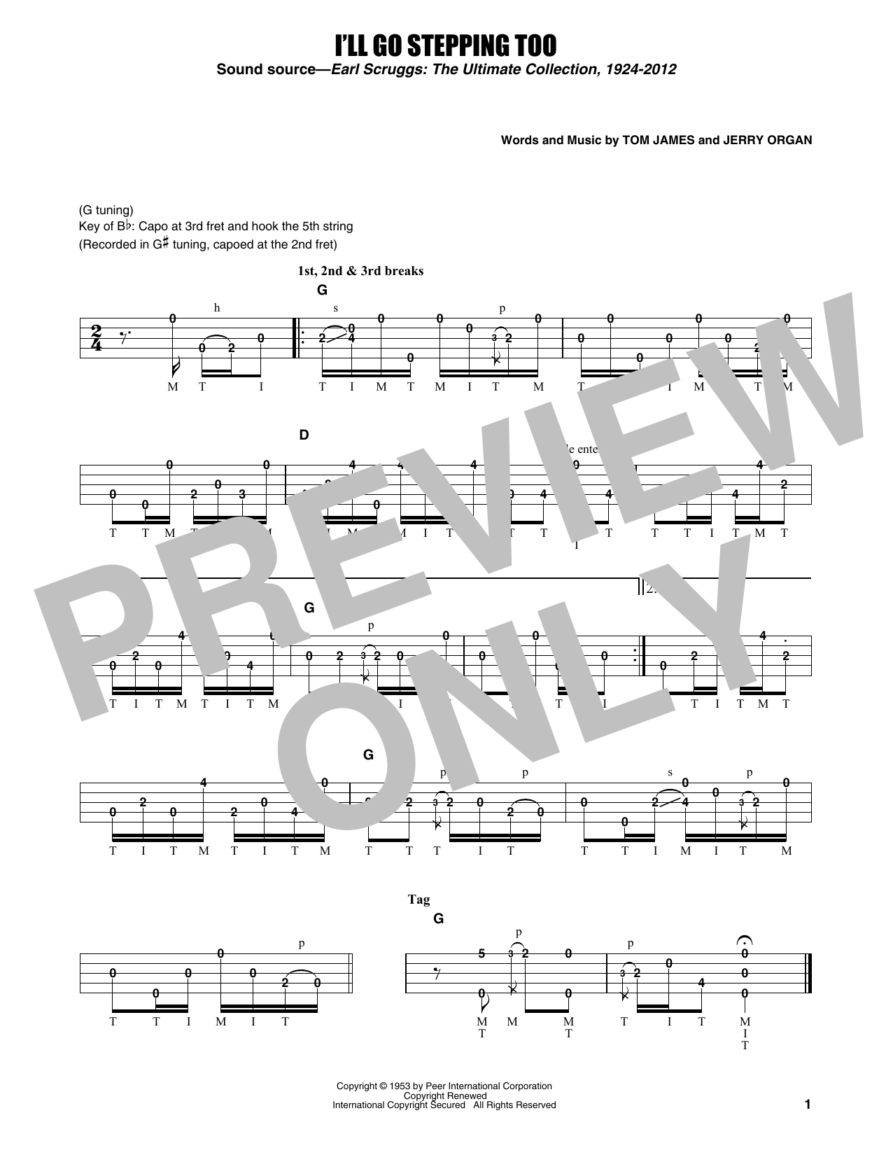 Download or print Earl Scruggs I'll Go Stepping Too sheet music, chords and digital score arranged for Banjo Tab. This Jazz score includes 1 page(s).