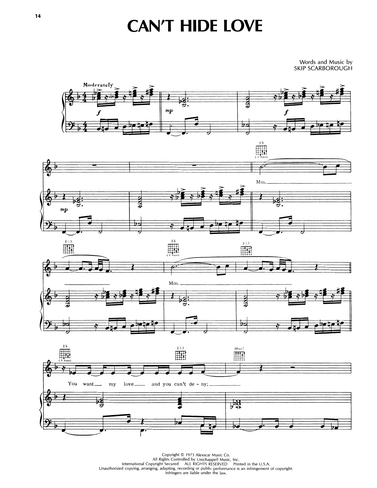Download or print Earth, Wind & Fire Can't Hide Love sheet music, chords and digital score arranged for Piano, Vocal & Guitar Chords (Right-Hand Melody). This Pop score includes 4 page(s).