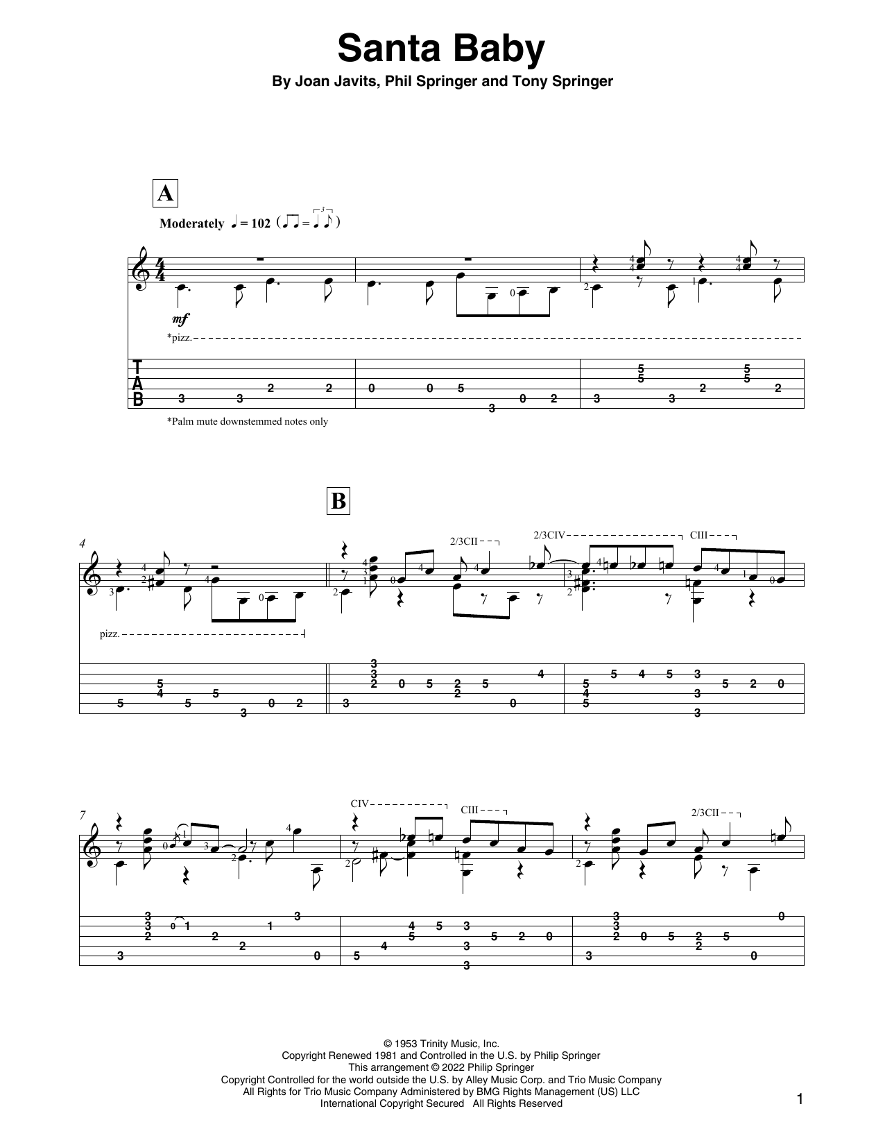 Download or print Eartha Kitt Santa Baby (arr. David Jaggs) sheet music, chords and digital score arranged for Solo Guitar. This Christmas score includes 4 page(s).