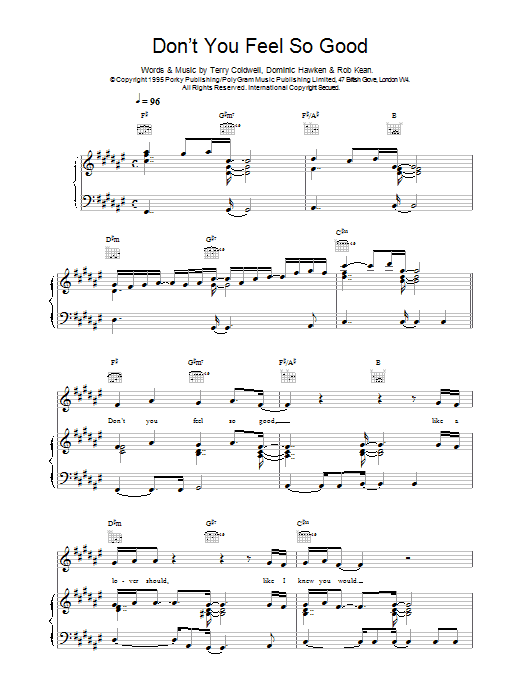 Download or print East 17 Don't You Feel So Good sheet music, chords and digital score arranged for Piano, Vocal & Guitar Chords. This Pop score includes 6 page(s).