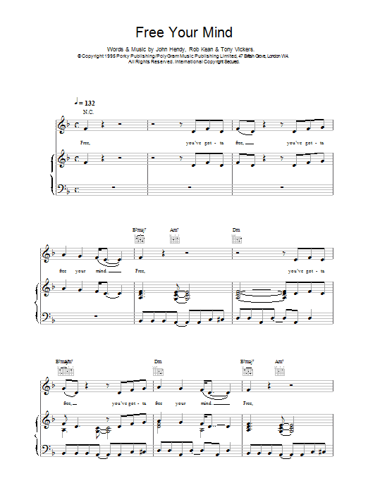 Download or print East 17 Free Your Mind sheet music, chords and digital score arranged for Piano, Vocal & Guitar Chords. This Pop score includes 6 page(s).