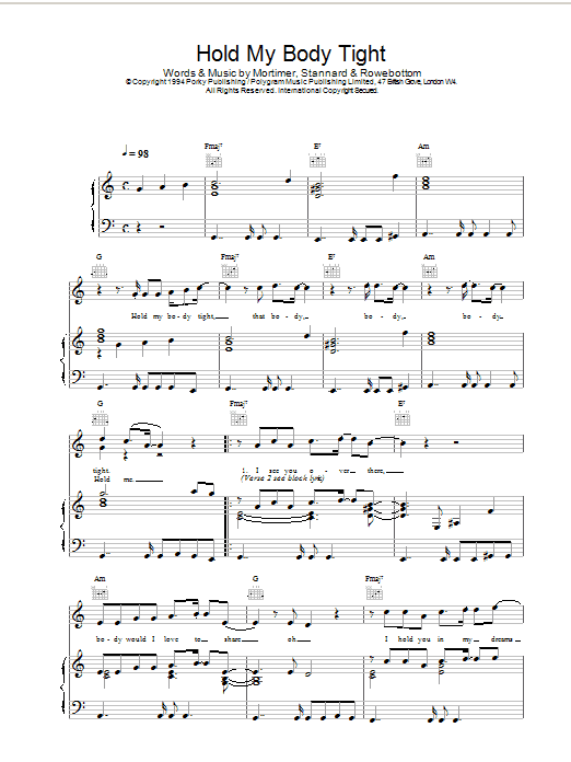 Download or print East 17 Hold My Body Tight sheet music, chords and digital score arranged for Piano, Vocal & Guitar Chords. This Pop score includes 4 page(s).