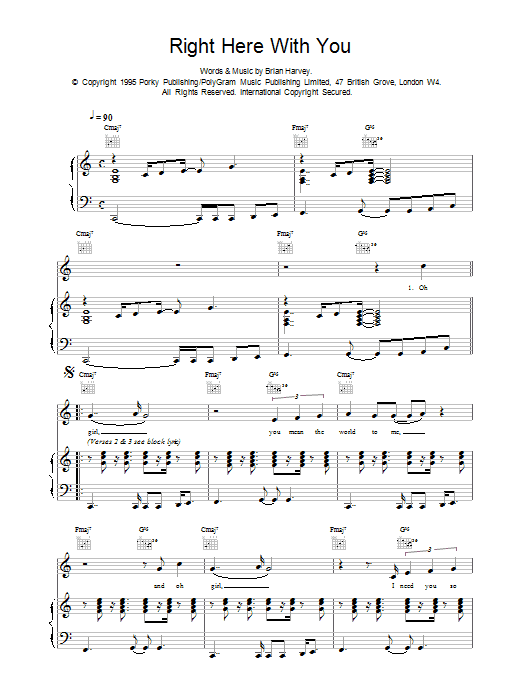 Download or print East 17 Right Here With You sheet music, chords and digital score arranged for Piano, Vocal & Guitar Chords. This Pop score includes 4 page(s).