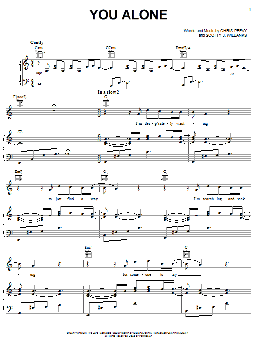 Download or print Echoing Angels You Alone sheet music, chords and digital score arranged for Piano, Vocal & Guitar Chords (Right-Hand Melody). This Pop score includes 8 page(s).
