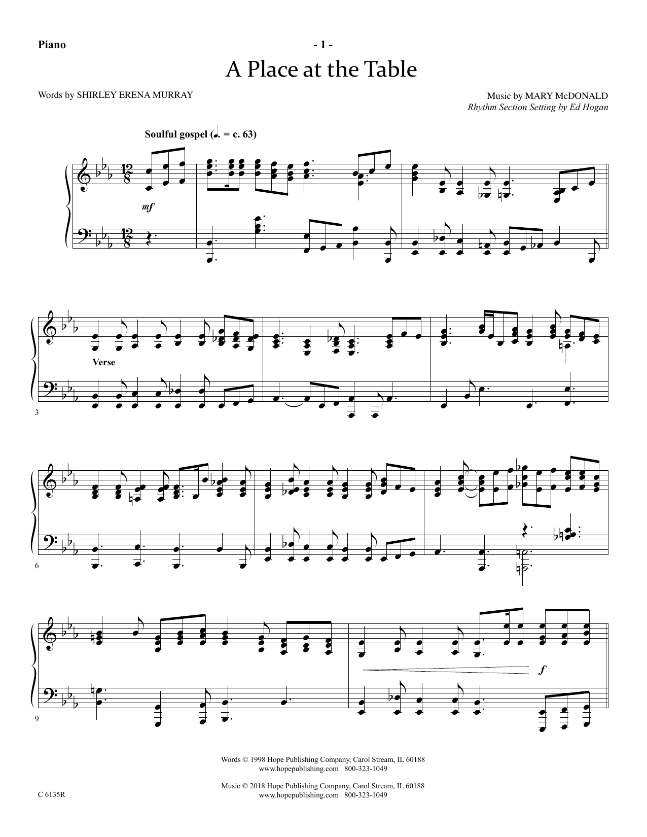 Download or print Ed Hogan A Place At The Table - Piano sheet music, chords and digital score arranged for Choir Instrumental Pak. This Sacred score includes 4 page(s).