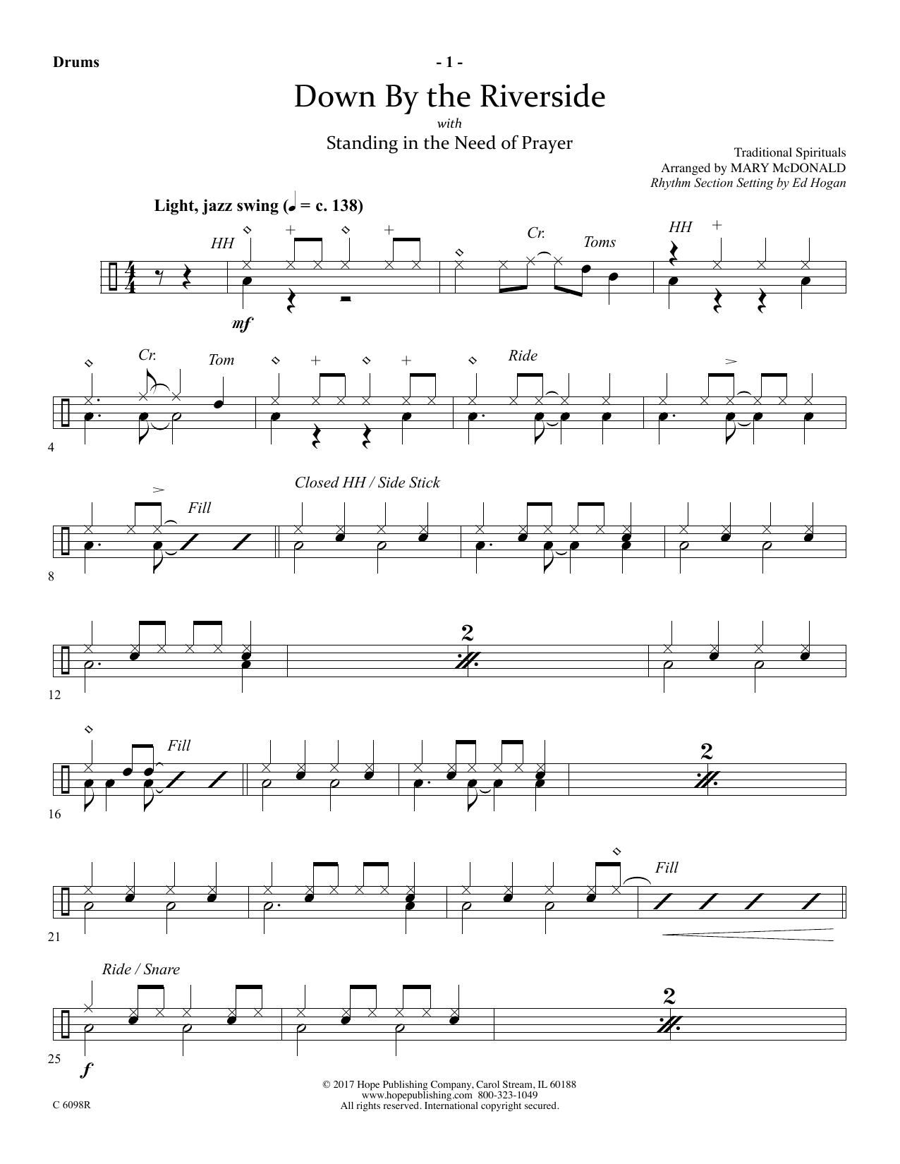 Download or print Ed Hogan Down by the Riverside - Drums sheet music, chords and digital score arranged for Choir Instrumental Pak. This Sacred score includes 3 page(s).