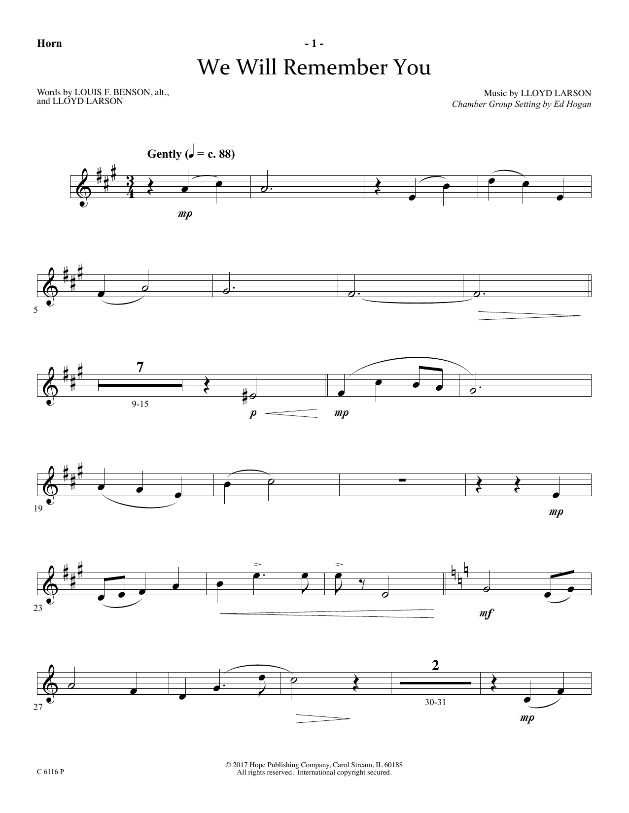 Download or print Ed Hogan We Will Remember You - F Horn sheet music, chords and digital score arranged for Choir Instrumental Pak. This Sacred score includes 3 page(s).