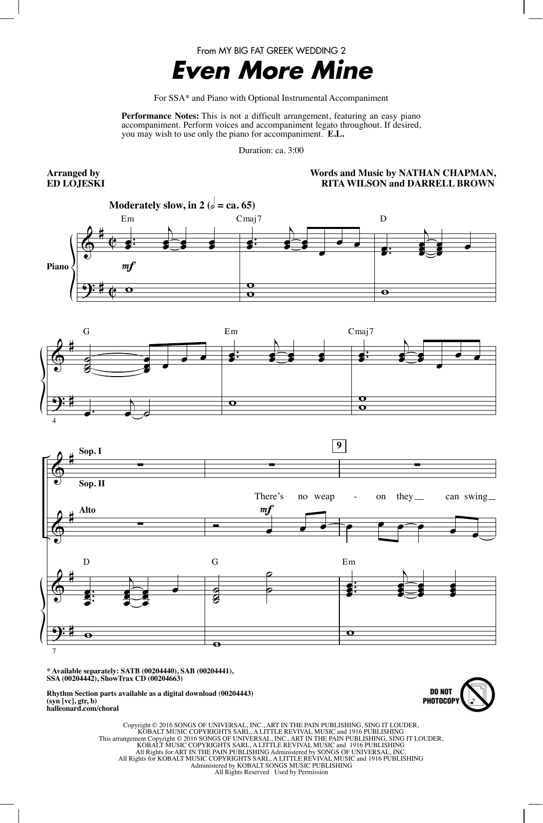 Download or print Rita Wilson Even More Mine (arr. Ed Lojeski) sheet music, chords and digital score arranged for SSA Choir. This Pop score includes 10 page(s).