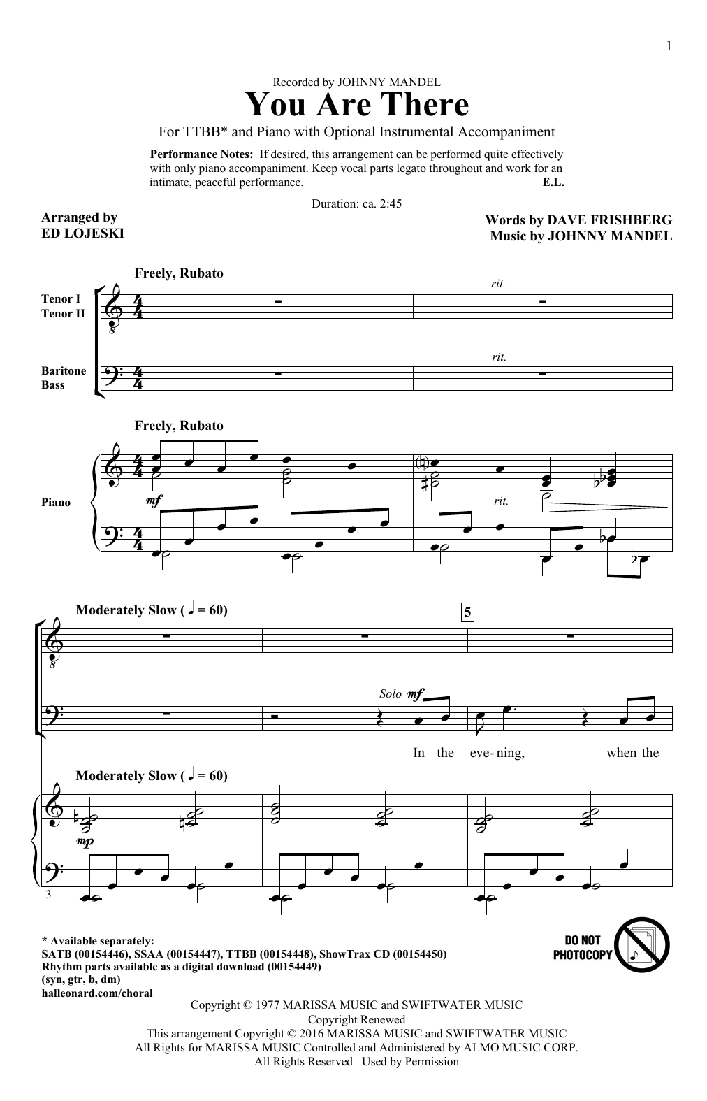 Download or print Ed Lojeski You Are There sheet music, chords and digital score arranged for SSA Choir. This Jazz score includes 6 page(s).