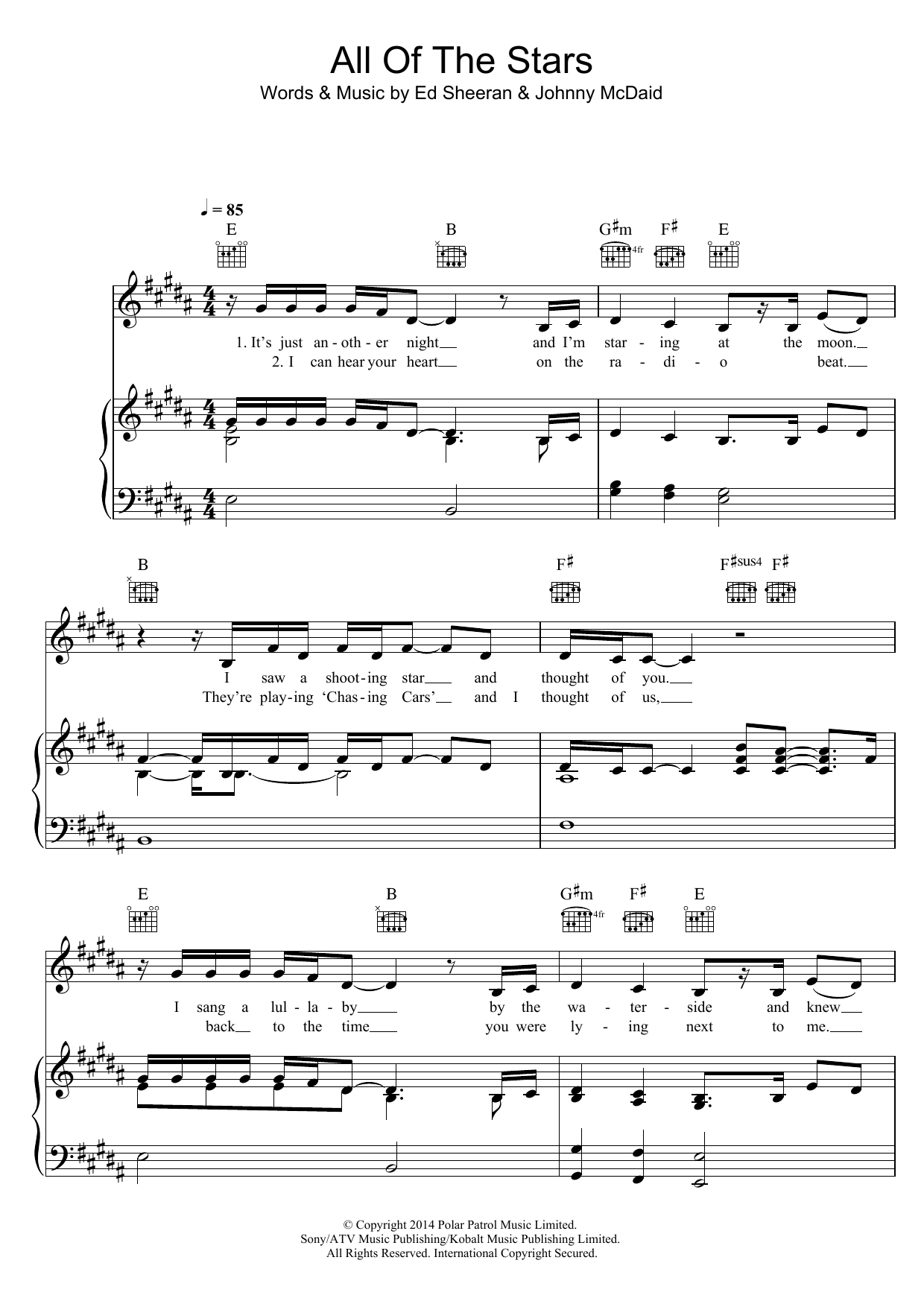 Download or print Ed Sheeran All Of The Stars sheet music, chords and digital score arranged for Really Easy Piano. This Pop score includes 4 page(s).