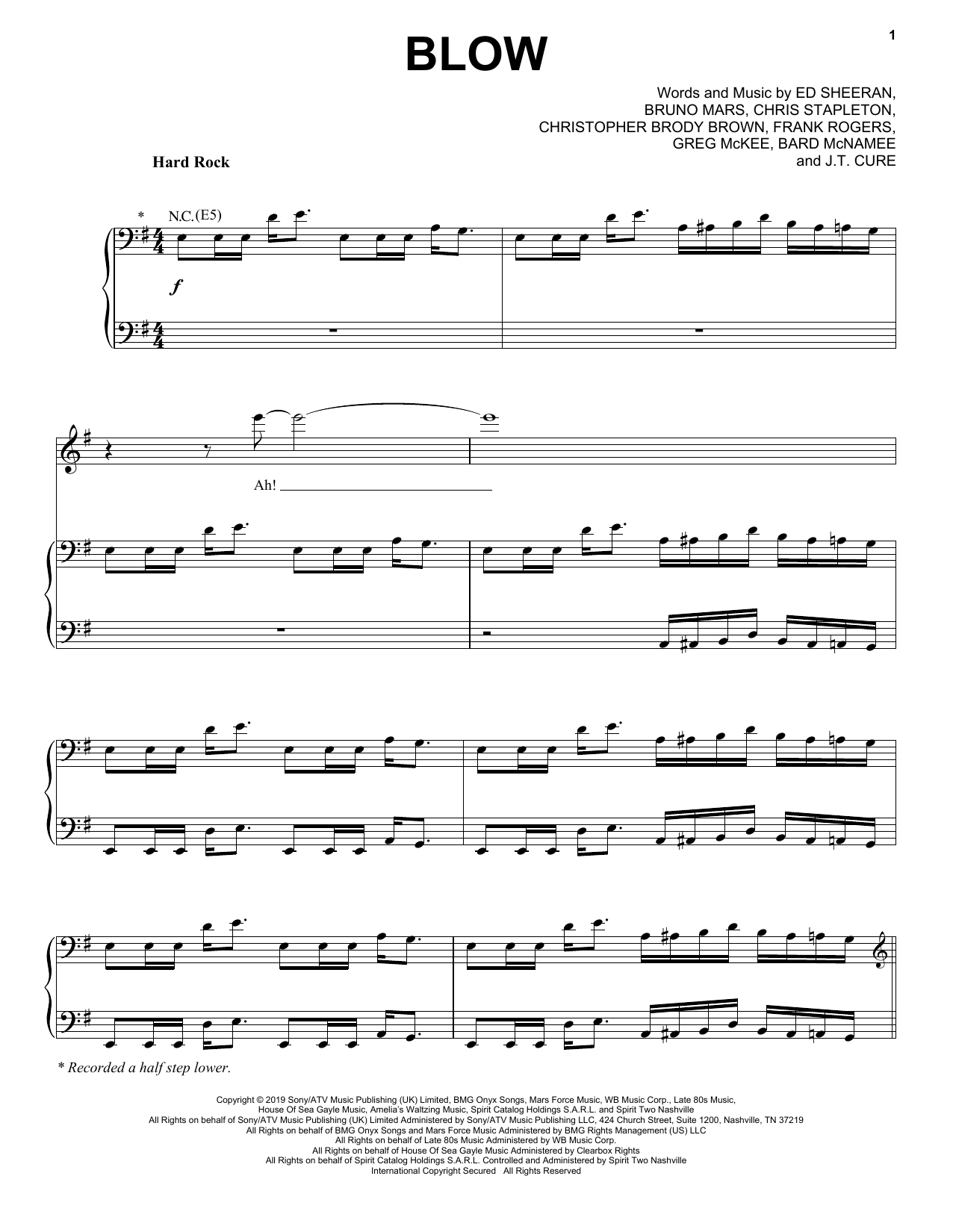Download or print Ed Sheeran, Chris Stapleton & Bruno Mars BLOW sheet music, chords and digital score arranged for Piano, Vocal & Guitar Chords (Right-Hand Melody). This Country score includes 8 page(s).