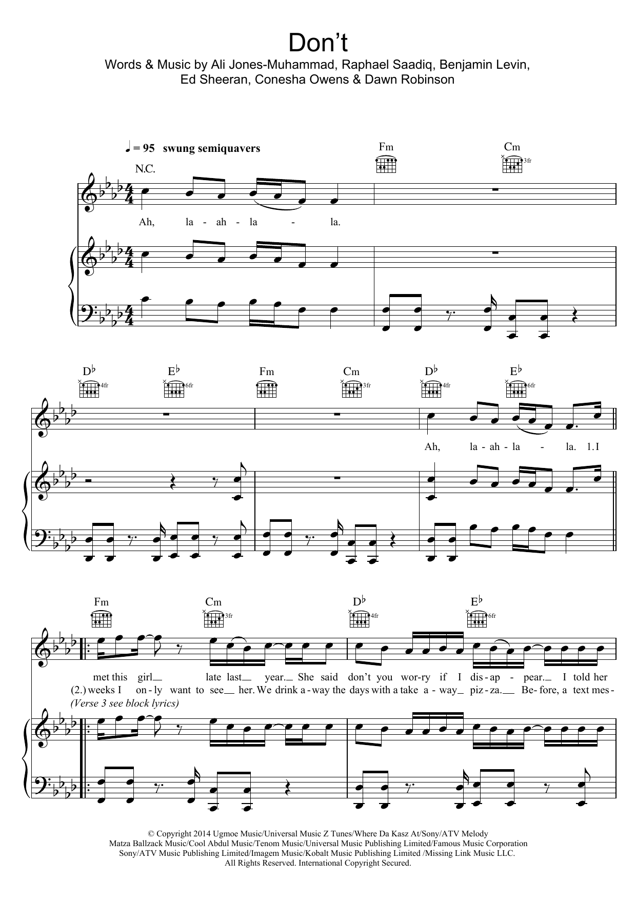 Download or print Ed Sheeran Don't sheet music, chords and digital score arranged for Piano, Vocal & Guitar Chords. This Pop score includes 7 page(s).