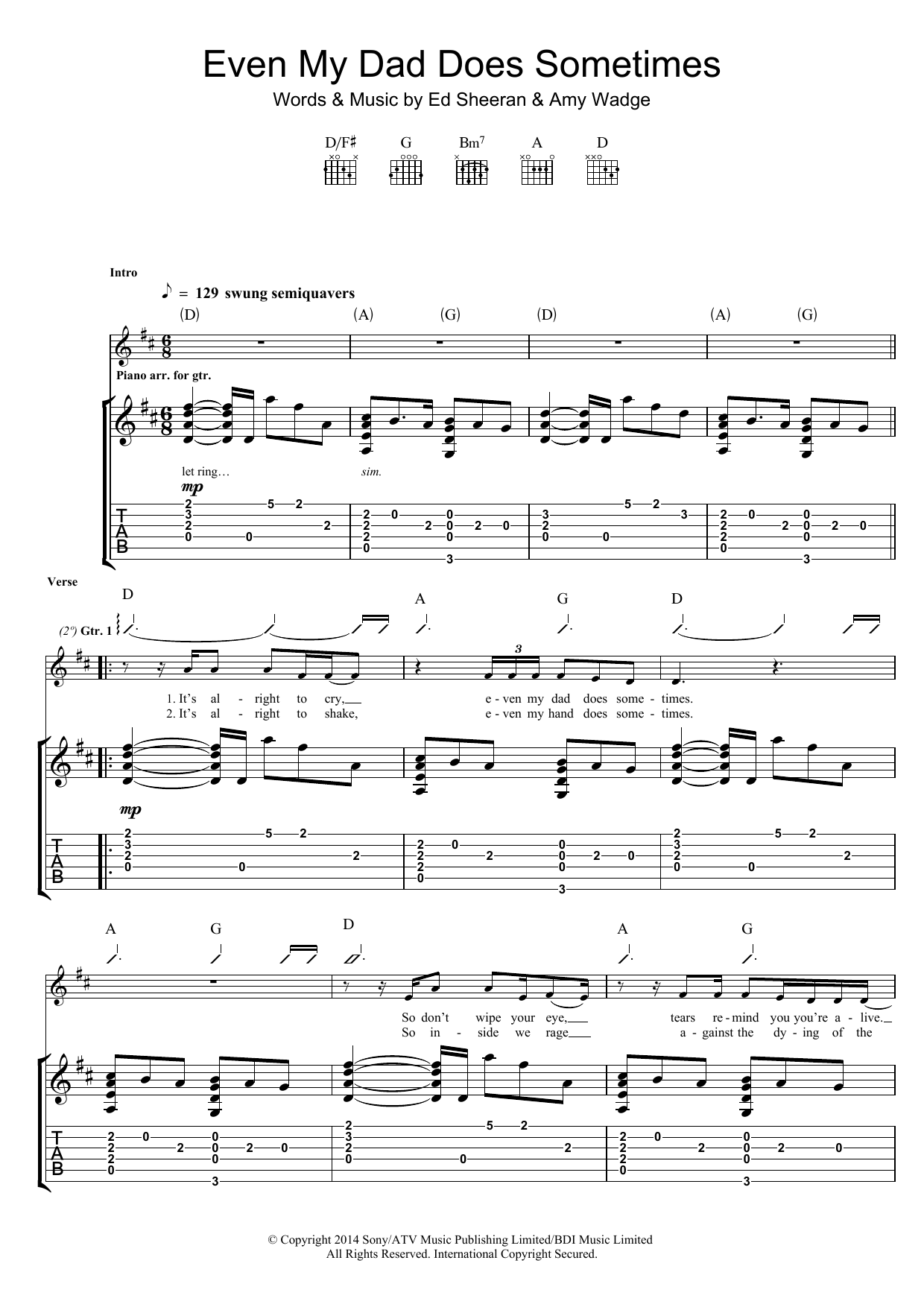 Download or print Ed Sheeran Even My Dad Does Sometimes sheet music, chords and digital score arranged for Guitar Tab. This Pop score includes 5 page(s).