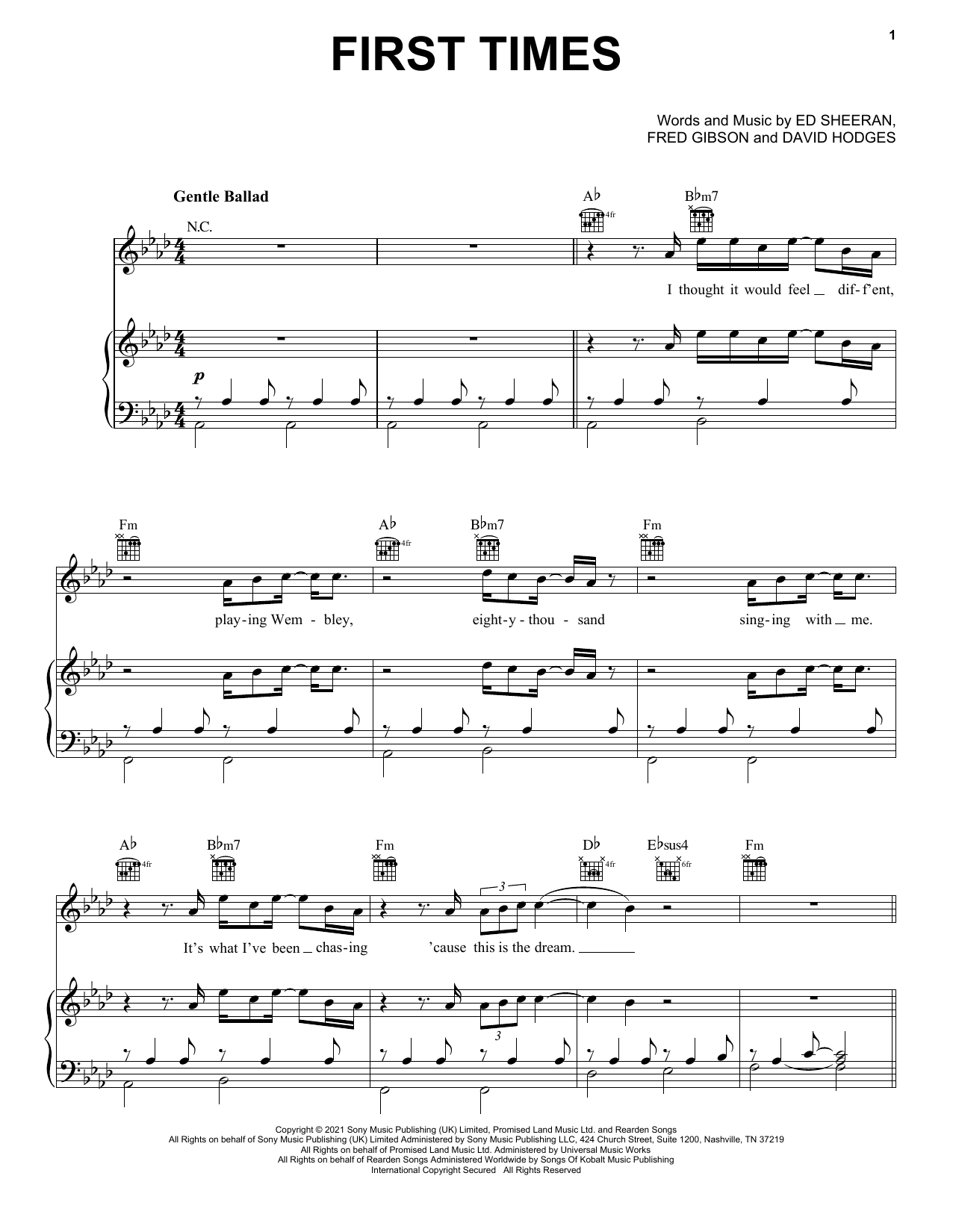 Download or print Ed Sheeran First Times sheet music, chords and digital score arranged for Easy Piano. This Pop score includes 5 page(s).