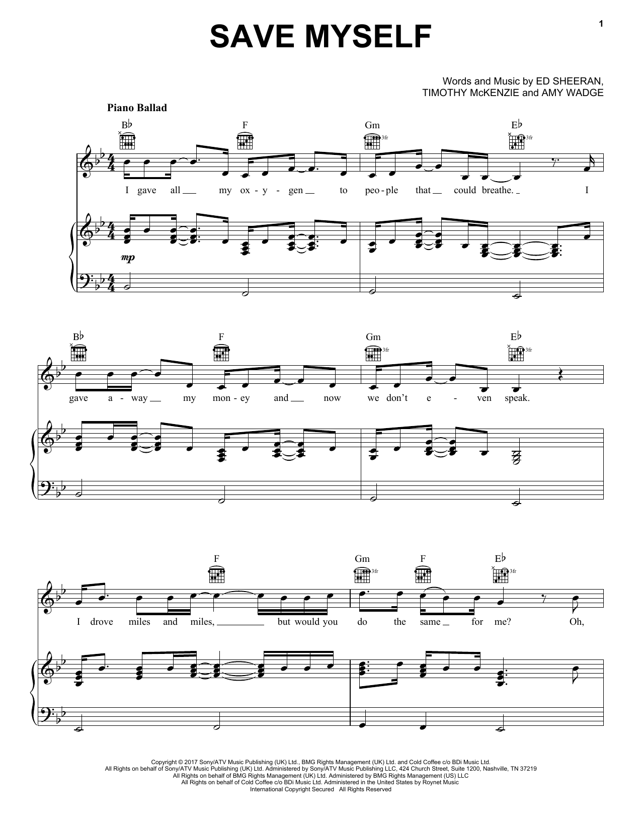 Download or print Ed Sheeran Save Myself sheet music, chords and digital score arranged for Really Easy Piano. This Pop score includes 4 page(s).