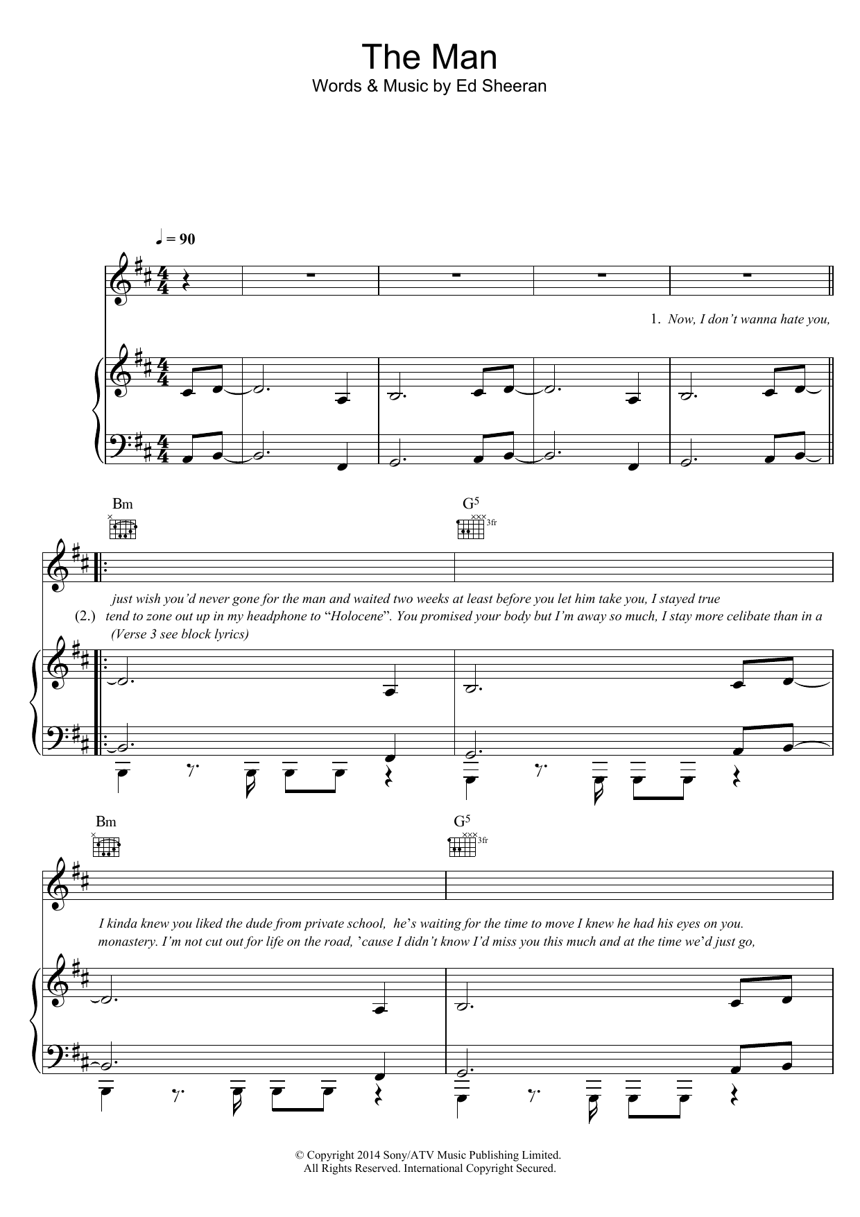 Download or print Ed Sheeran The Man sheet music, chords and digital score arranged for Guitar Tab. This Pop score includes 5 page(s).
