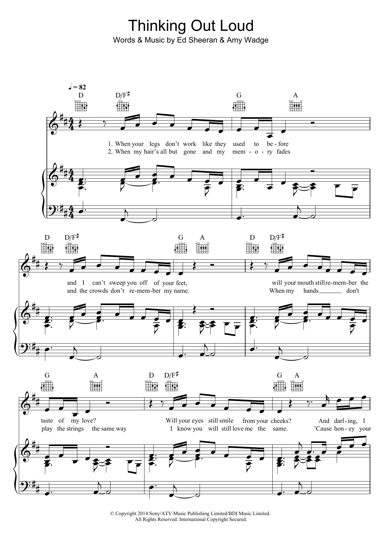 Download or print Ed Sheeran Thinking Out Loud sheet music, chords and digital score arranged for Violin Duet. This Pop score includes 2 page(s).
