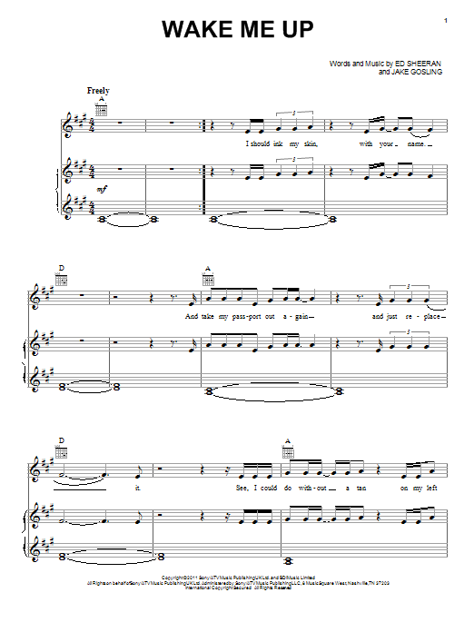 Download or print Ed Sheeran Wake Me Up sheet music, chords and digital score arranged for Guitar Tab. This Pop score includes 5 page(s).