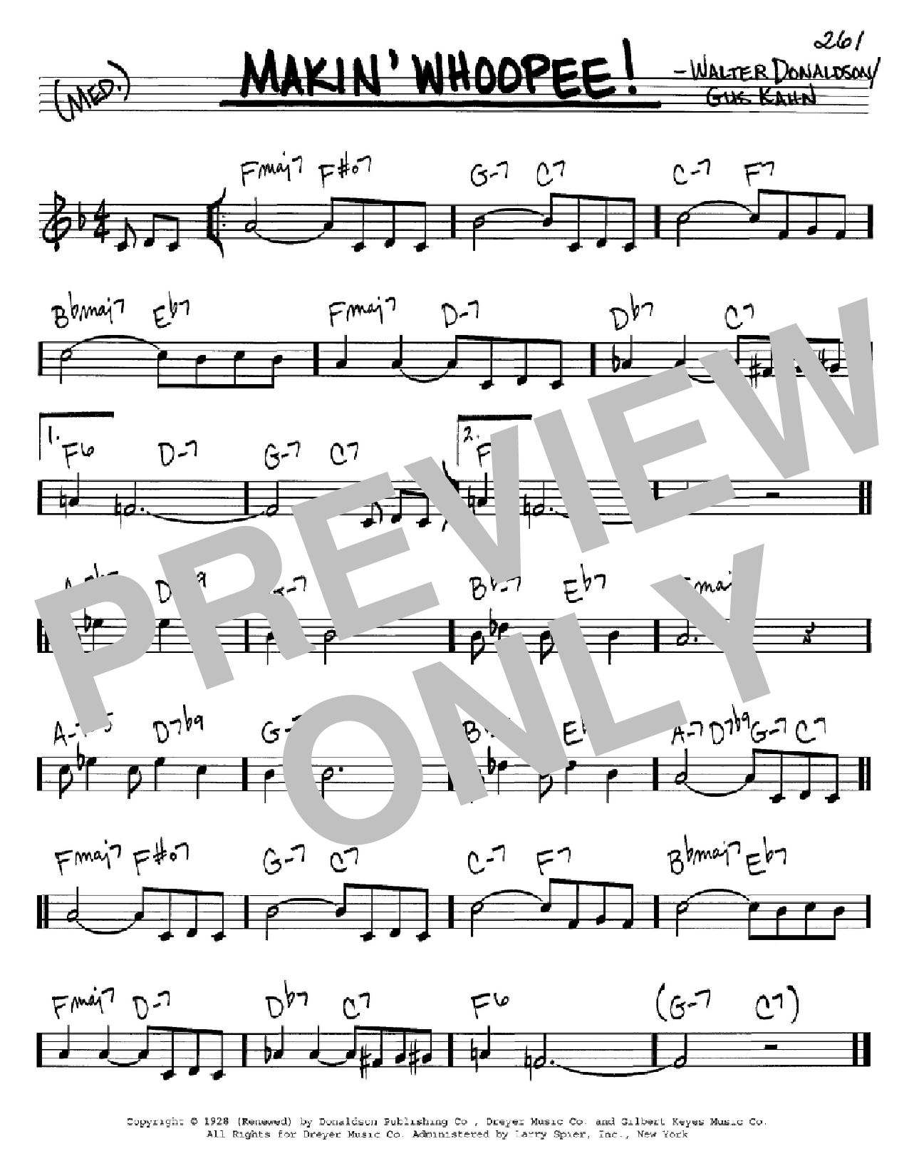 Download or print Eddie Cantor Makin' Whoopee! sheet music, chords and digital score arranged for Real Book – Melody & Chords – C Instruments. This Jazz score includes 1 page(s).