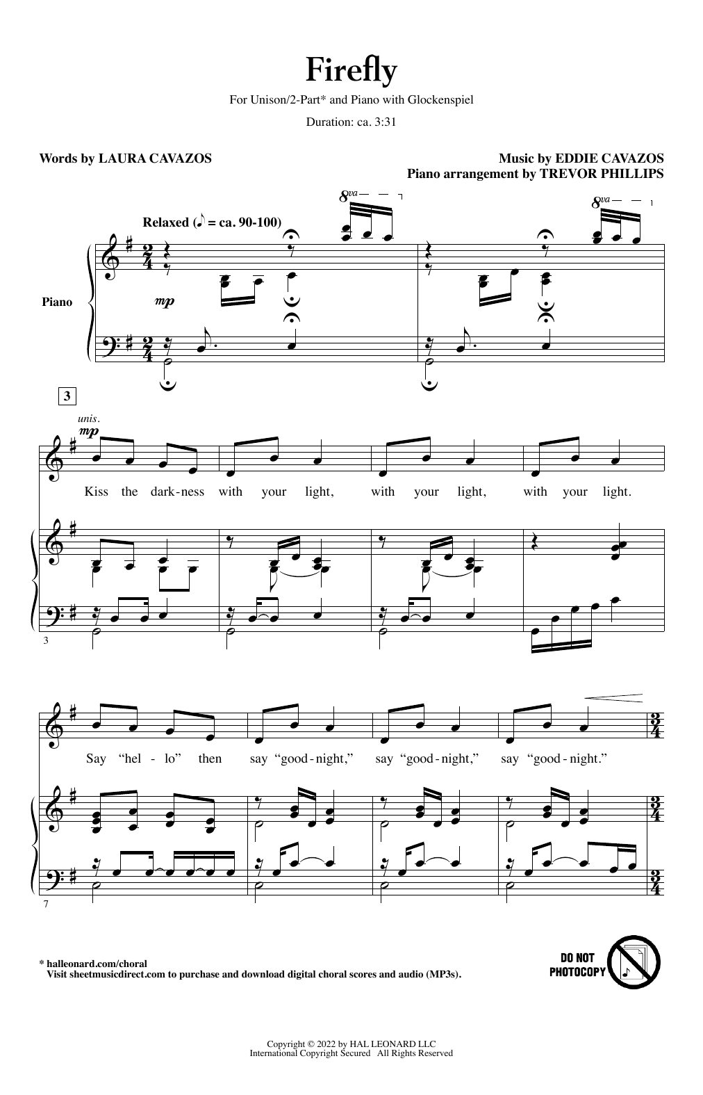 Download or print Eddie Cavazos Firefly (arr. Trevor Phillips) sheet music, chords and digital score arranged for Choir. This Concert score includes 6 page(s).